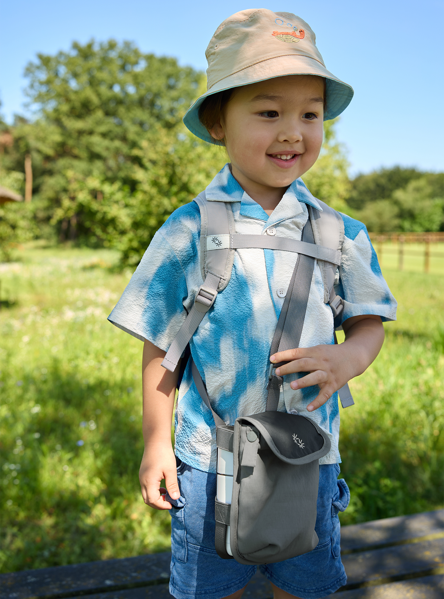 Great for adults and kids alike, the Bottle Buddy can hold multiple sizes of water bottles for easy access on the go and comes with a pocket for your phone, card, keys and cash.