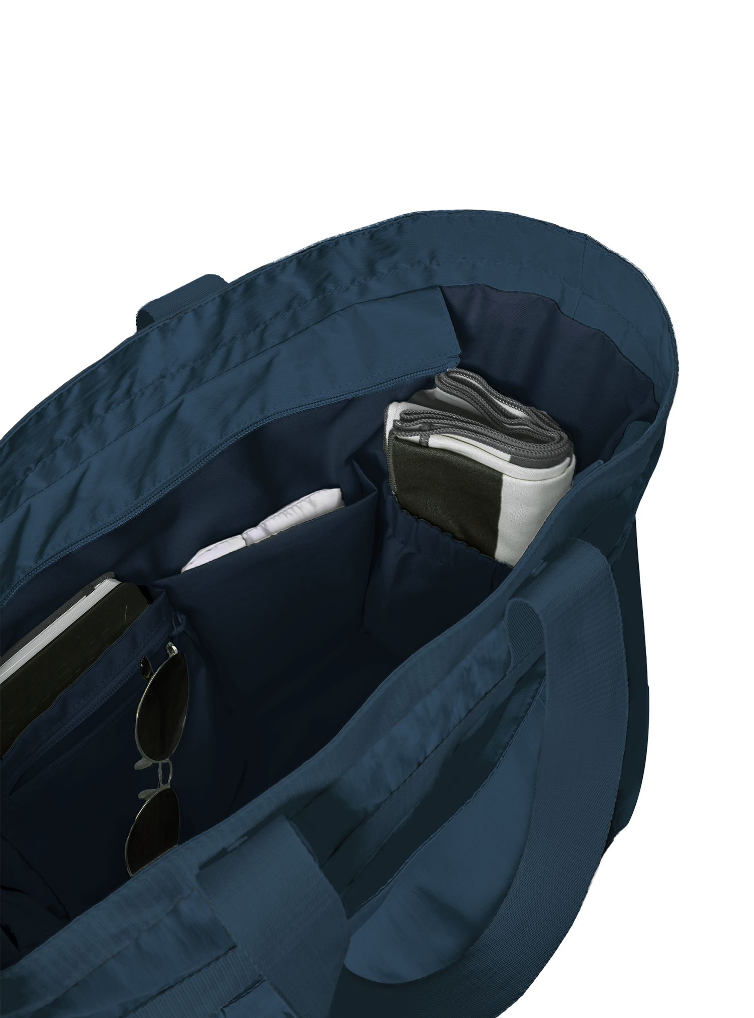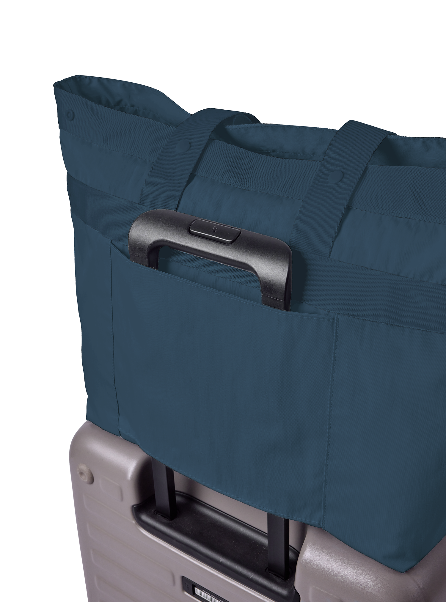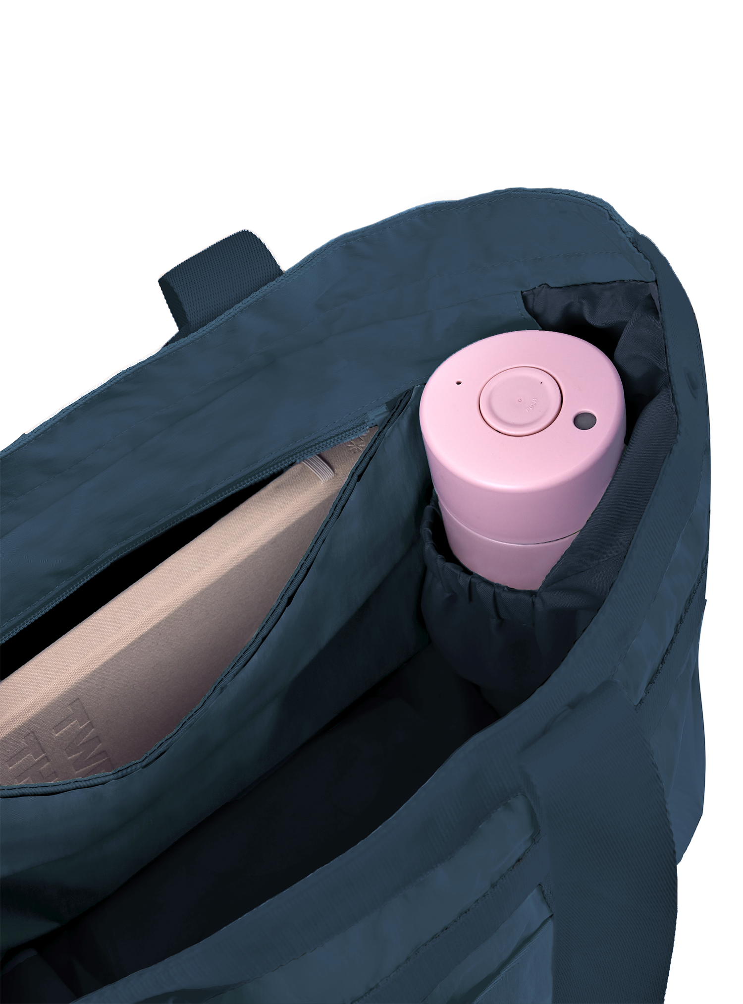 Comes with a luggage slot and zip closure for convenience on the go. The zip closure works best with the Workhorse, Everyday and Shopper configuration of the Multi-Way Tote. Due to the multi-configuration of the Multi-Way Tote, the zip closure was designed to start slightly forward so you can continue to configure your Multi-Way Tote effectively while enjoying a closure to keep your belongings in. Bonus feature - easy access to your water bottle in the Workhorse model!