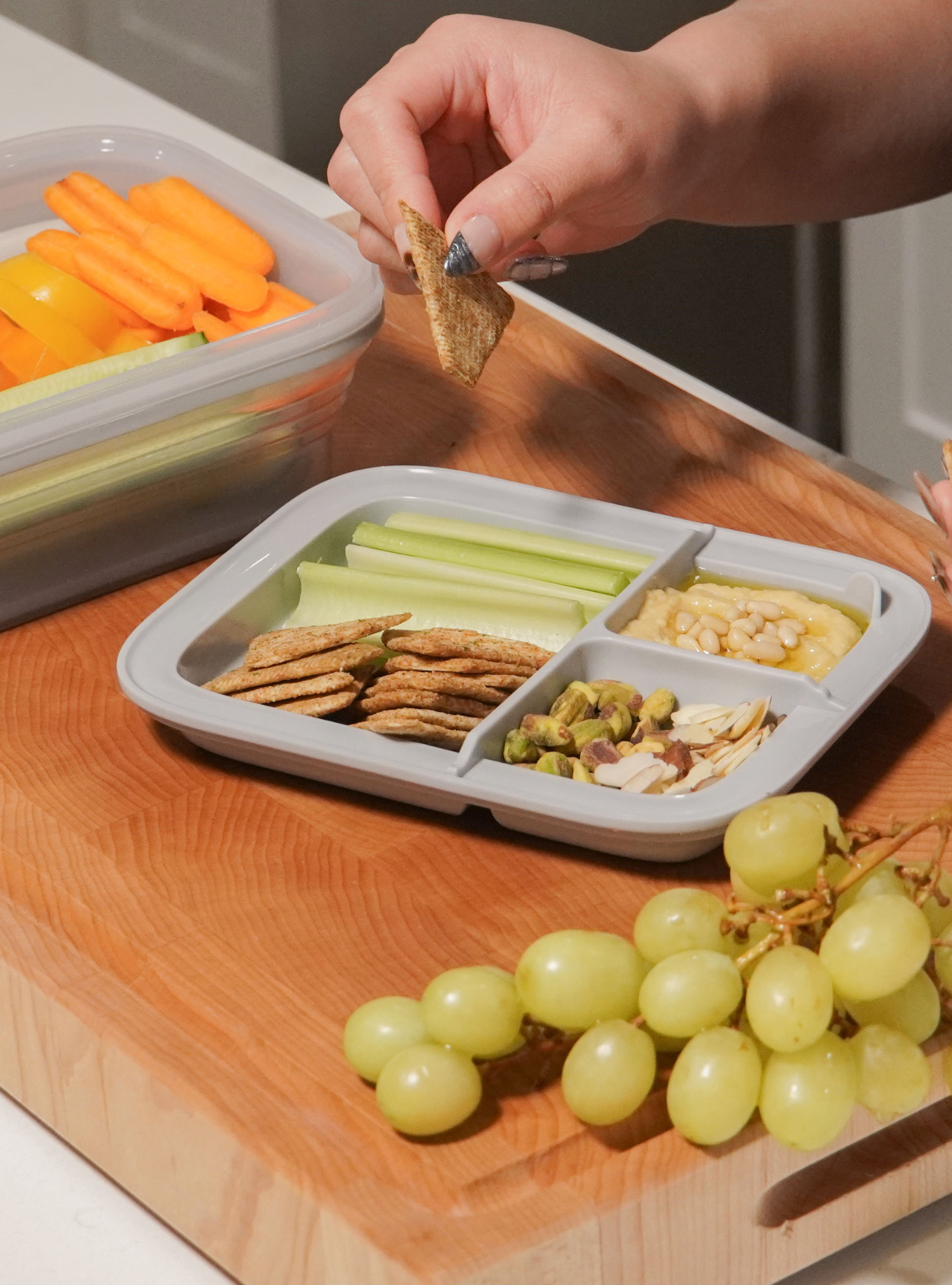 The Stojo Collapsible Bento Container is perfect for snacks and lunches on the go. Keep your liquids separated from solids with the included bento tray, which fits neatly inside the container.
