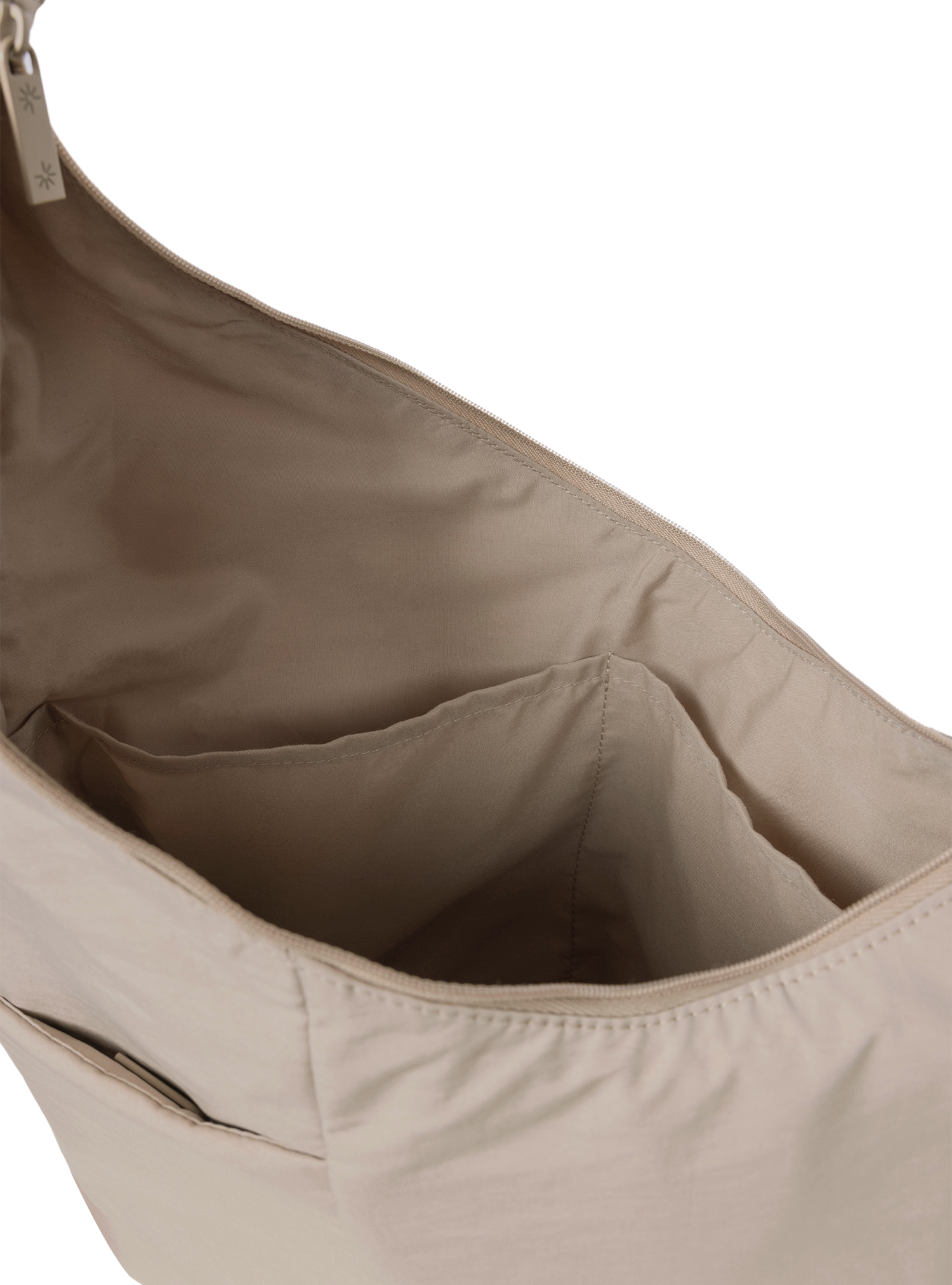 Fits up to a 13” MacBook Pro comfortably without changing the silhouette of the bag.